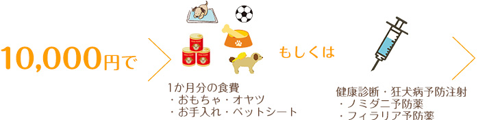 | フィラリア予防薬 | 10,000円 | 13,000円 | 病院によって異なります |