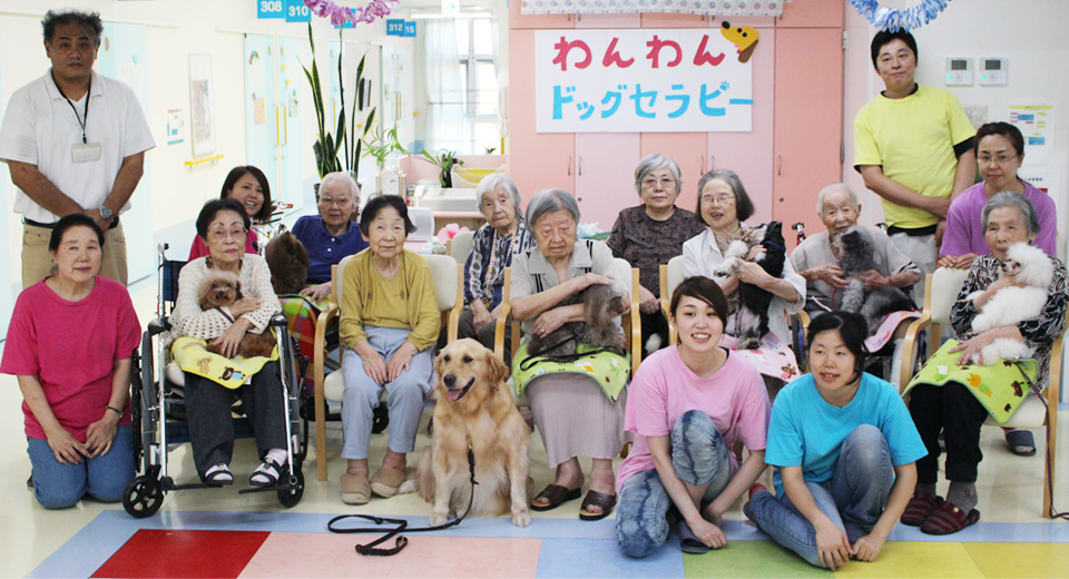 お年寄りがドッグセラピーを受けるとあまり動かない方が犬をさわろうと動いたりあまり表情を変えない方が犬を見て笑顔になったりします。