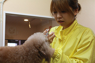 犬も人間と同じく、キレイ好きです。 被毛のお手入れは見た目(美容)だけでなく、健康管理にとても大切なことです。 ブラッシングをすることで、被毛についた汚れを取り除き、犬とのコミュニケーションがとれます。また、間近で愛犬を観察できるので、ノミやダニを発見したり、皮膚病などのトラブルを抱えていないかなど、病気の早期発見にも役立ちます。