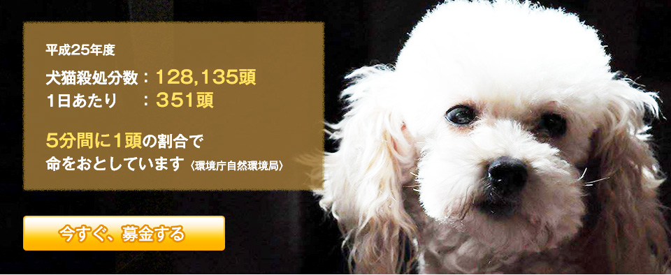 これからも命の大切さを伝えるとともに、 「動物と人が幸せに共存できる日本」 「殺処分ゼロの国 日本」 の実現のために、ひたすら地道に活動し続け、 犬猫殺処分数ゼロの活動をしなくてよい世の中にしていきたいと思います。 犬猫殺処分数ゼロ活動の財源を支えているのは、寄付制度(サポート隊員)です。